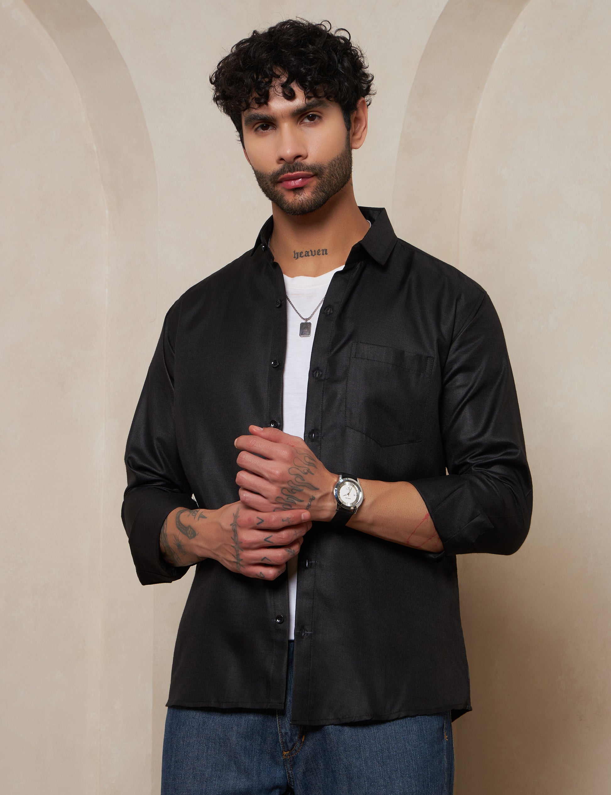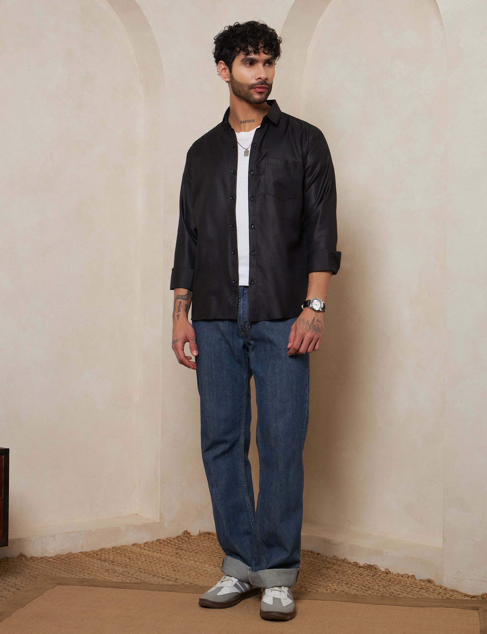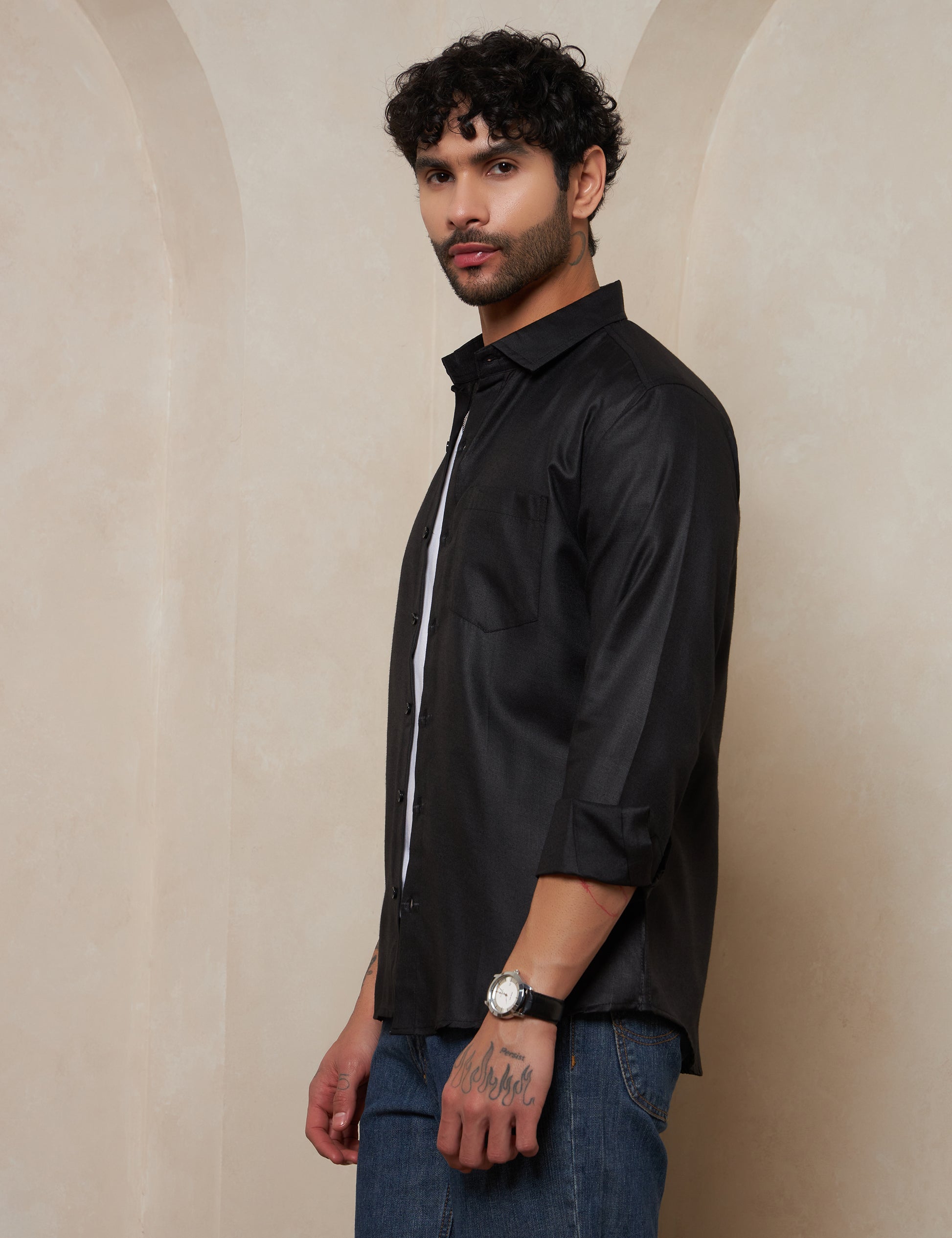 Premium Charcoal Black Full-Sleeve Shirt for Men
